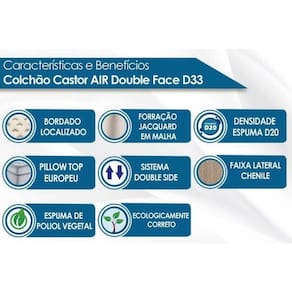 Colchão Casal Espuma D33 Black White Euro Pillow Double Face (138x188x25) - Castor