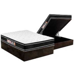 Conjunto Box Baú Casal: Colchão Espuma Castor D33 Black e White Double Face + Base CRC Suede Brown(138x188)