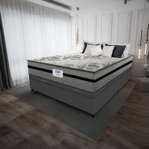 Cama Box Baú Casal Colchão Gazin Com Molas Ensacadas Rubi 138x188x73cm Suede Cinza/Preto