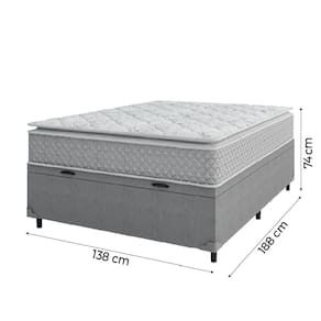 Cama Box Baú Casal Colchão Molas Ensacadas Pillow Top Perfect 138x188x74cm Cinza/Branco Umaflex - Suporta até 120kg por Pessoa