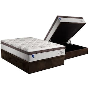 Conjunto Box Baú Casal: Colchão Molas Plumatex MasterPocket Ensacadas Personalle + Base CRC Suede Brown(138x188)