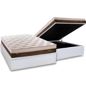 Abaixo segue os produtos do KIT: Conjunto Box Baú Casal: Colchão Molas Plumatex MasterPocket Ensacadas Personalle + Base CRC Courano White(138x188)
