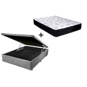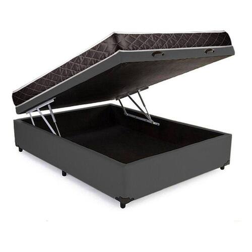 Cama Box Baú Casal Conforto Sintético Cinza + Colchão Casal Conforto Espuma D23 Com EPS 24x138x188