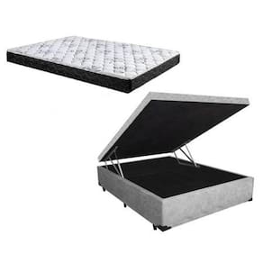 Cama Box Baú Casal Conforto Sintético Cinza + Colchão Casal Conforto Espuma D33 Com EPS 14x138x188