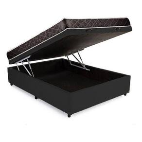 Cama Box Baú Casal Conforto Sintético Preto + Colchão Casal Conforto Espuma D33 17x138x188