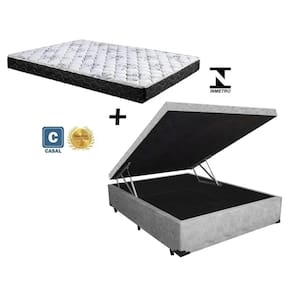 Cama Box Baú Casal Conforto Suede Cinza + Colchão Casal Conforto Espuma D33 Com EPS 16x138x188