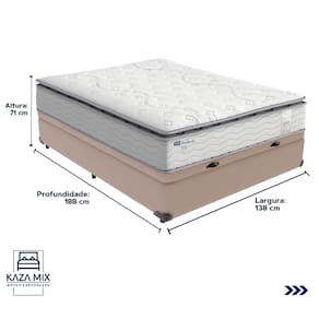 Bem-vindo(a) ao nosso catálogo!Apresentamos a você uma descrição completa sobre esse produto:O Colchão Amsterdã da Probel oferece o melhor em qualidade de sono. Com molas Prolastic e espuma de duas camadas (D33 e D65), proporciona um suporte firme e duradouro para um descanso revigorante. Seu Pillow Top Super adiciona um toque de luxo, enquanto suporta até 120kg de peso. Experimente conforto personalizado e uma postura correta durante o sono. Adquira o seu hoje e transforme suas noites em momentos de relaxamento incomparável.Colchão:Modelo: Amsterdã;Marca: Probel;Tamanho: Casal;Dimensões: 138x188x33cm; (largura x comprimento x altura)Conforto: Firme;Proteções: Antiácaro, antialérgico, antifungo, antimofo;Possui: Molas Prolastic;Pillow Top: Super;Camadas de Espuma: D33 e D65 Peso máximo recomendado: 120kg;Garantia: 03 meses;Base Box com Baú:Marca: KazaMix;Cor do Baú: Bege;Material dos pés: Madeira;Estrutura: Madeira;Abertura: Pistão a gás;Peso máximo recomendado: até 150kg de cada lado;Altura do Baú: 32cm;Altura dos pés: 5cm;Altura total: 37cm;Garantia: 03 meses;Selo Ecologicamente Correto.Invista no seu sono e experimente o conforto e a qualidade!Atenção: Antes de finalizar sua compra, certifique-se de que as dimensões do produto sejam adequadas para serem transportadas pelos elevadores, portas, escadas e corredores de sua residência. Ressaltamos que não nos responsabilizamos pelo transporte do produto por meios específicos, como escadas, guinchos ou içamentos.