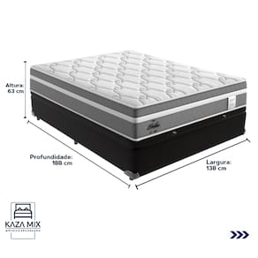 Colchão: Modelo: Berlim; Marca: Probel; Tamanho: Casal; Dimensões: 138x188x26cm; (largura x comprimento x altura) Conforto: Intermediário; Proteções: Antiácaro, antialérgico, antifungo, antimofo; Possui: Molas (Ensacadas); Pillow Top: Euro Pillow; Camadas de Espuma: D28; Tecido: Acabamento em Malha e Tecido Jaquard; Peso máximo recomendado: 110kg; Garantia: 03 meses;