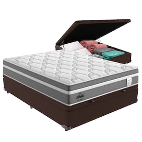 Base Box com Baú: Marca: KazaMix; Cor do Baú: Marrom; Material dos pés: Madeira; Estrutura: Madeira; Abertura: Pistão a gás; Peso máximo recomendado: até 150kg de cada lado; Altura do Baú: 32cm; Altura dos pés: 5cm; Altura total: 37cm; Garantia: 03 meses; Selo Ecologicamente Correto.