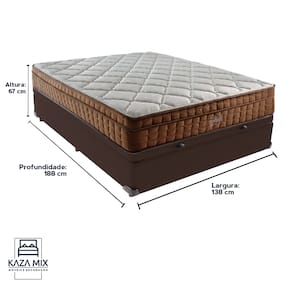 Bem-vindo(a) ao nosso catálogo!Apresentamos a você uma descrição completa sobre esse produto:O Colchão Star Pillow In Ortopédico da marca Anjos é uma escolha excepcional para quem busca conforto e suporte durante o sono. Seu princípio ortopédico preventivo oferece um suporte progressivo, ideal para manter a saúde da coluna vertebral e prevenir dores nas costas. Com revestimento em malha para uma respirabilidade superior e acabamento lateral em veludo, o colchão combina funcionalidade e elegância em um só produto. Seu nível de conforto extra firme é indicado para biotipos até 140kg, garantindo uma superfície de sono estável e segura. Além disso, o colchão é tratado para proteger contra ácaros, mofo e fungos, promovendo um ambiente de sono limpo e saudável. Experimente o Colchão Star Pillow In e desfrute de noites tranquilas e revitalizantes.Colchão:Modelo: Star Pillow In;Marca: Anjos;Tamanho: Casal;Dimensões: 138x188x30cm; (largura x comprimento x altura)Conforto: Extra Firme;Tecido: Revestimento em Malha e Lateral em VeludoProteções: Antiácaro, antialérgico, antifungo, antimofo; Espumas AG70 + D28Peso máximo recomendado: 140KG;Garantia: 03 meses;Base Box com Baú:Marca: KazaMix;Cor do Baú: Marrom;Material dos pés: Madeira;Estrutura: Madeira;Abertura: Pistão a gás;Peso máximo recomendado: até 150kg de cada lado;Altura do Baú: 32cm;Altura dos pés: 5cm;Altura total: 37cm;Garantia: 03 meses;Selo Ecologicamente Correto.Invista no seu sono e experimente o conforto e a qualidade!Atenção: Antes de finalizar sua compra, certifique-se de que as dimensões do produto sejam adequadas para serem transportadas pelos elevadores, portas, escadas e corredores de sua residência. Ressaltamos que não nos responsabilizamos pelo transporte do produto por meios específicos, como escadas, guinchos ou içamentos.