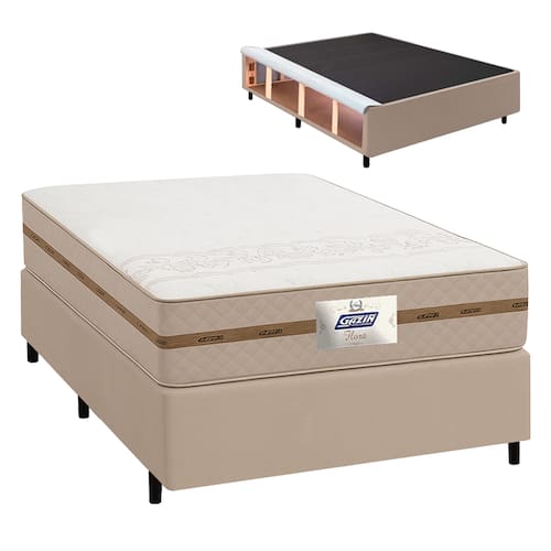 MEDIDAS: [ A ] = 64 cm / 52 cm (Sem pés) [ L ] = 138 cm [ P ] = 188 cm MEDIDAS INTERNAS DO BAÚ: [ A ] = 26 cm [ L ] = 128 cm [ P ] = 178 cm ALTURA DOS PÉS: 12 cm PESO SUPORTADO: 110 kg por pessoa PESO: 63 kg MODELO: Cama Box Baú Casal Colchão com Molas 138x188x64cm Flora MARCA DO COLCHÃO: Gazin MARCA DO BOX: Sider REVESTIMENTO SUPERIOR: Revestimento superior em tecido poliéster, tecido 100% sintético. Por ser sintético não é propenso ao acúmulo de poeira e materiais orgânicos, além de ser de fácil higienização. Produto com ótimo custo benefício REVESTIMENTO LATERAL: Revestimento lateral em tecido poliéster, tecido 100% sintético. Por ser sintético não é propenso ao acúmulo de poeira e materiais orgânico, além de ser de fácil higienização REVESTIMENTO INFERIOR: TNT Antiderrapante, Tecido 100% poliéster, com detalhes emborrachados. Evita que o colchão deslize sobre a base, trazendo maior segurança e conforto para o sono EURO: Sim, Euro IN EPS: Sim MOLEJO: Molas Bonnel TECIDO DO BOX: Suede PÉS: 9 MATERIAL DOS PÉS: Polipropileno MATERIAL DA ESTRUTURA DO BOX: Eucalipto tratado reflorestado DIFERENCIAL: Euro in para maior conforto, Molas Bonnel. Praticidade no transporte, armazenagem e montagem ITENS INCLUSOS: 1 Colchão de 1,38m e 1 Box Baú de 1,38m GARANTIA COLCHÃO: 12 Meses pelo Fabricante GARANTIA BOX: 3 Meses pelo Fabricante