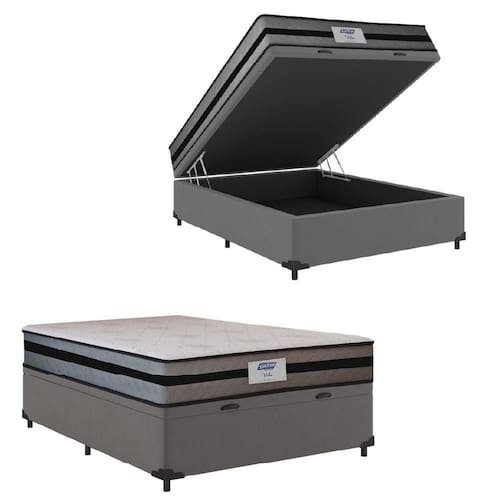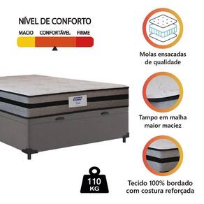 MODELO: Cama Box Baú Casal Colchão Com Molas Ensacadas Vibe 138x188x63cm Suede Suporta Até 110 Kg Por Pessoa