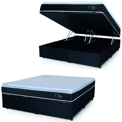 MODELO: Cama Box Baú Casal King Colchão Com Molas Ensacadas City Pillow Top 193x203x64cm