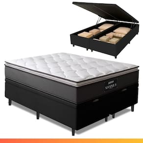 MODELO: Cama Box Baú Casal King Colchão Molas Ensacadas Pillow Top Maximus 193x203x69cm