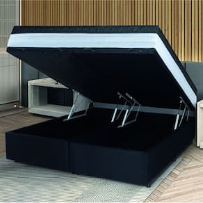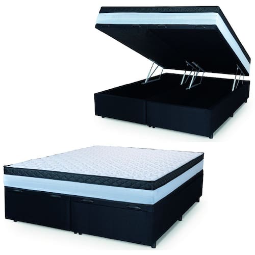 Cama Box Baú Casal Queen Colchão Com Molas Ensacadas 158x198x63cm Dunas Branco/Preto Hellen