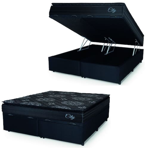 MODELO: Cama Box Baú Casal Queen Colchão Com Molas Ensacadas City Pillow Top 158x198x64cm