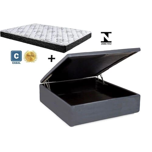 Cama Box Baú Casal Resistence Sintético Cinza + Colchão Casal Resistence Espuma D23 Com EPS 24x138x188