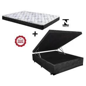 Cama Box Baú Casal Resistence Suede Preto + Colchão Casal Resistence Espuma D33 Com EPS 17x138x188