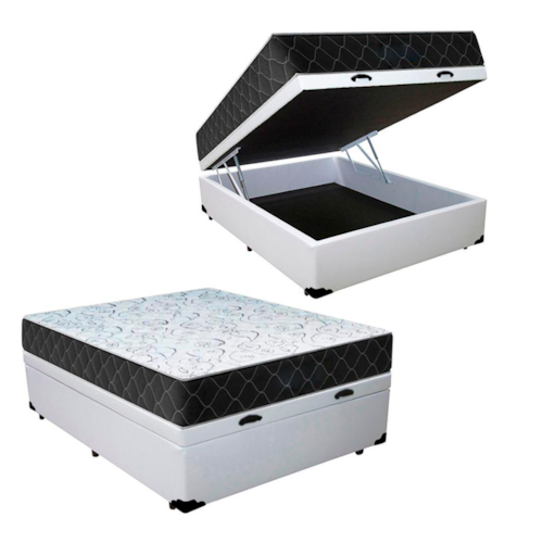 Cama Box Baú Casal Sintético Branco com Colchão Espuma D33 Marrocos 30cm
