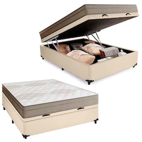 Cama Box Baú Casal Sintético + Colchão de Molas Ensacadas Portobel Ipanema - 138x188x66cm