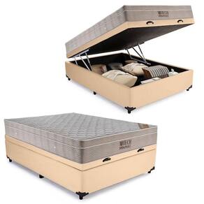 Cama Box Baú Casal Sintético + Colchão Ortobom Airtech Molas Ensacadas 138x188x65 Bege