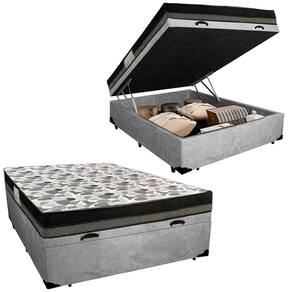 Cama Box Baú Casal Suede Bipartido + Colchão Ortobom ISO Dupla Face 60x138x188
