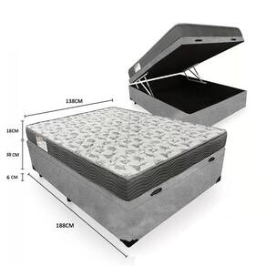 Cama Box Baú Casal Suede + Colchão De Molas Ensacadas - Serene - 138x188x62cm