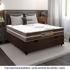 Cama Box Baú Casal Suede + Colchão Molas Ensacadas Texas Prime Colchões 138x188x63cm - Marrom
