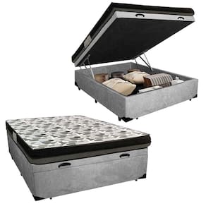 Cama Box Baú Casal Suede + Colchão Ortobom Iso Dupla Face 138x188x60 Cor:cinza
