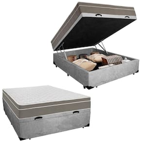 Cama Box Baú Casal Suede + Colchão Sereneprime Molas Ensacadas 138x188x69 Cinza - Blush