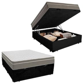 Cama Box Baú Casal Suede Bipartido Preto + Colchão SerenePrime Molas Ensacadas 65x138x188