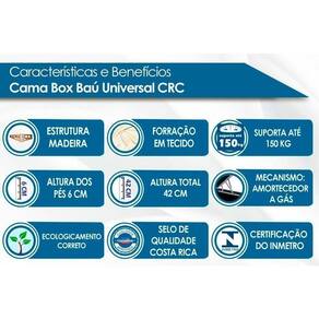 Tempo de Garantia da Cama Box - 3 meses Certificação de Qualidade - Qualidade Aprovada - Selo Ecologicamente Correto - Garantia de Qualidade Costa Rica - Certificação de Segurança - Qualidade Compulsória INMETRO Nossa Avaliação da Cama Box - Qualidade Muito Boa
