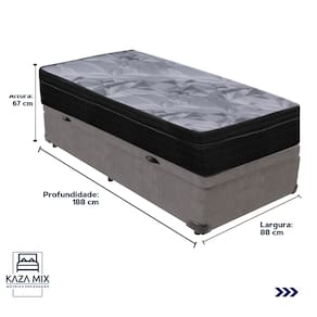 O conforto que sua casa precisa e a qualidade que você merece está na Kazamix!Redefina suas noites de sono com o Colchão Pampa Molas Ensacadas, projetado para oferecer máximo conforto e suporte. Suas molas ensacadas individualmente garantem estabilidade, minimizando vibrações e proporcionando um descanso tranquilo. O Ortopillow com tecido em poliéster de alta resistência e bordado matelassê acrescenta uma camada extra de maciez e conforto. Com tratamento antiácaro, antifungo e tecnologia No Turn, é ideal para quem busca praticidade e um ambiente de sono mais saudável. Este colchão combina qualidade e durabilidade para oferecer uma experiência de descanso incomparável.Modelo: Pampa Marca: OrtobomTamanho: SolteiroDimensões: 88x188X24 (Largura x Comprimento x Altura)Conforto: MacioSistema: Molas ensacadas Pillow: Euro PillowPeso Máximo recomendado: 120 kg (Por pessoa)Proteções: Antiácaro, antialérgico, antifungo, antimofoGarantia: 1 ano pelo FabricanteO conforto que sua casa precisa e a qualidade que você merece está na KazamixAproveite cada metro quadrado do seu dormitório com a Cama Box Baú!Projetada com madeira de reflorestamento reforçada, a Cama Box Baú é a escolha ideal para quem busca otimização de espaço e praticidade na organização do dia a dia.Com um baú generoso, ela oferece a solução perfeita para armazenar travesseiros extras, cobertores, malas e muito mais. Além disso, sua estrutura robusta suporta até 150 kg por pessoa, garantindo a sustentação ideal para o seu colchão e prolongando sua vida útil.O pistão a gás robusto proporciona uma abertura suave e segura do baú, oferecendo praticidade e resistência no uso diário. Para completar, o acabamento de alta qualidade combina perfeitamente com qualquer estilo de decoração, agregando elegância e versatilidade ao seu ambiente.Não perca tempo! Adquira agora mesmo sua Cama Box Baú e diga adeus à falta de espaço e desorganização.Marca: KazaMixModelo: BaúCor do Box: CinzaTamanho: SolteiroDimensões: 88X188X37 (Largura x Comprimento x Altura) Estrutura: MadeiraPeso máximo recomendado: 150 kg (Por Pessoa)Altura do Box: 32 cm Altura dos Pés: 5 cm Altura total: 37 cm Garantia: 03 mesesSelo Ecologicamente CorretoAtenção: Antes de finalizar sua compra, certifique-se de que as dimensões do produto sejam adequadas para serem transportadas pelos elevadores, portas, escadas e corredores de sua residência. Ressaltamos que não nos responsabilizamos pelo transporte do produto por meios específicos, como escadas, guinchos ou içamentos.