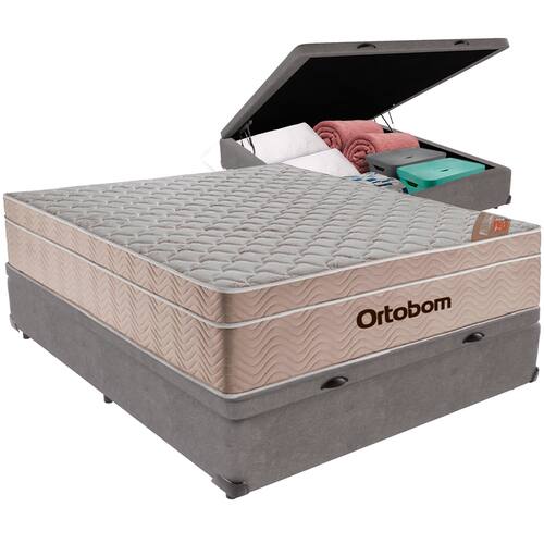O conforto que sua casa precisa e a qualidade que você merece está na Kazamix!Durma com a Qualidade e Conforto que Você Merece!O Colchão Airtech SpringMolas Ensacadas Ortobom é a escolha perfeita para quem busca conforto e suporte. Equipado com um sistema de molas ensacadas, ele oferece suporte individualizado, garantindo o alinhamento correto da coluna e reduzindo os impactos dos movimentos durante o sono. O Euro Pillow proporciona uma camada extra de maciez, garantindo um sono ainda mais revigorante.Seu revestimento em tecido de malha e matelassê, junto com a lateral em suede, proporcionam um visual sofisticado, elevando ainda mais a estética do seu dormitório e agregando elegância ao ambiente.Além disso, o colchão conta com proteção antiácaro e antialérgico, criando um ambiente de sono mais saudável e ideal para quem busca bem-estar. Produzido com materiais de alta qualidade e a confiabilidade da Ortobom, líder em tecnologia e durabilidade, ele é feito para durar, oferecendo anos de conforto e suporte.Modelo: Airtech SpringMolas EnsacadasMarca: OrtobomTamanho: CasalDimensões: 138x188X25 (Largura x Comprimento x Altura)Conforto: MacioSistema: Molas EnsacadasPillow: Euro PillowPeso Máximo recomendado: 120 kg (Por pessoa)Proteções: Antiácaro, antialérgico, antifungo, antimofoGarantia: 1 ano pelo FabricanteO conforto que sua casa precisa e a qualidade que você merece está na KazamixAproveite cada metro quadrado do seu dormitório com a Cama Box Baú!Projetada com madeira de reflorestamento reforçada, a Cama Box Baú é a escolha ideal para quem busca otimização de espaço e praticidade na organização do dia a dia.Com um baú generoso, ela oferece a solução perfeita para armazenar travesseiros extras, cobertores, malas e muito mais. Além disso, sua estrutura robusta suporta até 150 kg por pessoa, garantindo a sustentação ideal para o seu colchão e prolongando sua vida útil.O pistão a gás robusto proporciona uma abertura suave e segura do baú, oferecendo praticidade e resistência no uso diário. Para completar, o acabamento de alta qualidade combina perfeitamente com qualquer estilo de decoração, agregando elegância e versatilidade ao seu ambiente.Não perca tempo! Adquira agora mesmo sua Cama Box Baú e diga adeus à falta de espaço e desorganização.Marca: KazaMixModelo: BaúCor do Box: CinzaTamanho: CasalDimensões: 138X188X37 (Largura x Comprimento x Altura) Estrutura: MadeiraPeso máximo recomendado: 150 kg (Por Pessoa)Altura do Box: 32 cm Altura dos Pés: 5 cm Altura total: 37 cm Garantia: 03 mesesSelo Ecologicamente CorretoAtenção: Antes de finalizar sua compra, certifique-se de que as dimensões do produto sejam adequadas para serem transportadas pelos elevadores, portas, escadas e corredores de sua residência. Ressaltamos que não nos responsabilizamos pelo transporte do produto por meios específicos, como escadas, guinchos ou içamentos.