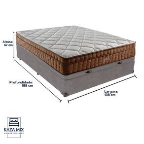O conforto que sua casa precisa e a qualidade que você merece está na Kazamix!Apresentamos o Colchão Star Pillow In Ortopédico da Anjos, a escolha ideal para quem busca conforto, suporte e um toque extra de luxo. Seu design ortopédico oferece suporte progressivo para a coluna, prevenindo dores nas costas e promovendo o bem-estar durante o sono. O Euro Pillow, uma camada adicional de espuma macia na parte superior, proporciona uma sensação de aconchego e alívio dos pontos de pressão, melhorando ainda mais o conforto.Com revestimento em malha, o colchão garante respirabilidade superior, enquanto o acabamento em veludo nas laterais traz elegância ao produto. O conforto extra firme é perfeito para pessoas até 140kg, oferecendo uma superfície de sono estável e segura. Além disso, o colchão é tratado contra ácaros e fungos, promovendo um ambiente de sono saudável.Invista em noites de sono revitalizantes e desfrute do equilíbrio perfeito entre conforto e qualidade com o Colchão Star Pillow In!Modelo: Anjos Star Pillow InMarca: AnjosTamanho: CasalDimensões: 138x188X30 (Largura x Comprimento x Altura)Conforto: Extra FirmePillow: Pillow TopPeso Máximo recomendado: 140 kg (Por pessoa)Proteções: Antiácaro, antialérgico, antifungo, antimofoGarantia: 1 ano pelo FabricanteO conforto que sua casa precisa e a qualidade que você merece está na KazamixAproveite cada metro quadrado do seu dormitório com a Cama Box Baú!Projetada com madeira de reflorestamento reforçada, a Cama Box Baú é a escolha ideal para quem busca otimização de espaço e praticidade na organização do dia a dia.Com um baú generoso, ela oferece a solução perfeita para armazenar travesseiros extras, cobertores, malas e muito mais. Além disso, sua estrutura robusta suporta até 150 kg por pessoa, garantindo a sustentação ideal para o seu colchão e prolongando sua vida útil.O pistão a gás robusto proporciona uma abertura suave e segura do baú, oferecendo praticidade e resistência no uso diário. Para completar, o acabamento de alta qualidade combina perfeitamente com qualquer estilo de decoração, agregando elegância e versatilidade ao seu ambiente.Não perca tempo! Adquira agora mesmo sua Cama Box Baú e diga adeus à falta de espaço e desorganização.Marca: KazaMixModelo: BaúCor do Box: CinzaTamanho: CasalDimensões: 138X188X37 (Largura x Comprimento x Altura) Estrutura: MadeiraPeso máximo recomendado: 150 kg (Por Pessoa)Altura do Box: 32 cm Altura dos Pés: 5 cm Altura total: 37 cm Garantia: 03 mesesSelo Ecologicamente CorretoAtenção: Antes de finalizar sua compra, certifique-se de que as dimensões do produto sejam adequadas para serem transportadas pelos elevadores, portas, escadas e corredores de sua residência. Ressaltamos que não nos responsabilizamos pelo transporte do produto por meios específicos, como escadas, guinchos ou içamentos.