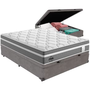 O conforto que sua casa precisa e a qualidade que você merece está na Kazamix!Apresentamos o Colchão Probel Berlim, a escolha ideal para quem busca conforto e qualidade. Com Molas Ensacadas (Molas Ensacadas) e camada Euro Pillow, ele proporciona suporte individualizado e maciez extra para um sono tranquilo. A espuma D28 oferece durabilidade e conforto, enquanto o tecido em malha e jacquard garante um toque sofisticado e respirabilidade.Além disso, conta com proteções antiácaro e antialérgico, criando um ambiente saudável para o seu descanso.Invista no seu conforto com o Colchão Probel Berlim!Modelo: BerlimMarca: ProbelTamanho: CasalDimensões: 138x188X26 (Largura x Comprimento x Altura)Conforto: IntermediárioSistema: Molas EnsacadasPillow: Euro PillowPeso Máximo recomendado: 110 kg (Por pessoa)Proteções: Antiácaro, antialérgico, antifungo, antimofoGarantia: 1 ano pelo FabricanteO conforto que sua casa precisa e a qualidade que você merece está na KazamixAproveite cada metro quadrado do seu dormitório com a Cama Box Baú!Projetada com madeira de reflorestamento reforçada, a Cama Box Baú é a escolha ideal para quem busca otimização de espaço e praticidade na organização do dia a dia.Com um baú generoso, ela oferece a solução perfeita para armazenar travesseiros extras, cobertores, malas e muito mais. Além disso, sua estrutura robusta suporta até 150 kg por pessoa, garantindo a sustentação ideal para o seu colchão e prolongando sua vida útil.O pistão a gás robusto proporciona uma abertura suave e segura do baú, oferecendo praticidade e resistência no uso diário. Para completar, o acabamento de alta qualidade combina perfeitamente com qualquer estilo de decoração, agregando elegância e versatilidade ao seu ambiente.Não perca tempo! Adquira agora mesmo sua Cama Box Baú e diga adeus à falta de espaço e desorganização.Marca: KazaMixModelo: BaúCor do Box: CinzaTamanho: CasalDimensões: 138X188X37 (Largura x Comprimento x Altura) Estrutura: MadeiraPeso máximo recomendado: 150 kg (Por Pessoa)Altura do Box: 32 cm Altura dos Pés: 5 cm Altura total: 37 cm Garantia: 03 mesesSelo Ecologicamente CorretoAtenção: Antes de finalizar sua compra, certifique-se de que as dimensões do produto sejam adequadas para serem transportadas pelos elevadores, portas, escadas e corredores de sua residência. Ressaltamos que não nos responsabilizamos pelo transporte do produto por meios específicos, como escadas, guinchos ou içamentos.