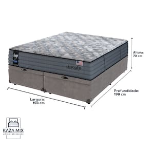 Bem-vindo(a) ao nosso catálogo! Apresentamos a você uma descrição completa sobre esse produto: A marca SealyEntre as personalidades que usam e usaram os colchões da marca Sealy estão a cantora Adele, Rainha Elizabeth II, a apresentadora Ellen DeGeneres e o jogador de basquete LeBron James. Atendendo também os hotéis da Disney, Copacabana Palace, Hard Rock Hotels e outros. Referência na fabricação de colchões de alta qualidade, a empresa foi fundada em 1881. Investindo em tecnologia de ponta e materiais premium para produzir produtos duráveis e confortáveis, é reconhecida por diversos consumidores famosos em todo o mundo. Modelo: LincolnNível de Conforto: MacioSuporte de peso: 300 quilos (150kg por pessoa)Molas: Molas Ensacadas DSS Espuma: Espuma Hipersoft GelAltura: 33 cm Tecido: Malha Margan 365 gO Colchão Lincoln Sealy é o ápice do conforto e sofisticação, criado para quem busca o melhor em qualidade de sono. Este colchão de 33 cm de altura é uma verdadeira obra-prima, combinando a renomada tecnologia de Molas Ensacadas DSS com o suporte adicional da tecnologia Posturepedic. Essa combinação oferece um alinhamento perfeito da coluna e alívio dos pontos de pressão, proporcionando uma experiência de sono revitalizante e tranquila. Com uma camada de espuma Hipersoft Gel, o Colchão Lincoln Sealy eleva o conforto a um novo patamar, garantindo uma sensação de maciez e ajudando a dissipar o calor, mantendo a temperatura ideal durante toda a noite. O tampo em Malha Margan, com 365 g/m², adiciona um toque de frescor e elegância, enquanto a lateral em Jacquard Plano reforça a durabilidade e o visual sofisticado. Além disso, o colchão é equipado com uma camada adicional de fibra siliconada e espuma Soft, com um reforço estratégico no terço central, garantindo suporte extra e conforto incomparável. As bordas firmes ampliam a área útil do colchão, evitando deformações e garantindo que cada centímetro seja aproveitado ao máximo. Com capacidade de suporte de até 150 kg por pessoa, o Colchão Lincoln Sealy não é apenas sinônimo de conforto, mas também de durabilidade e resistência. Eleve sua experiência de sono com este colchão, que combina tecnologia avançada, materiais de alta qualidade e um design elegante, transformando suas noites em momentos de descanso verdadeiramente restauradores. Além de tudo, esse produto acompanha a Cama Box com Baú da Kaza Mix e assim se torna um conjunto perfeito para o seu quarto! Marca: Kaza MixCor do Baú: CinzaTamanho: QueenMaterial dos pés: MadeiraEstrutura: MadeiraPeso máximo recomendado: Até 150kg de cada ladoAbertura: Pistão a gásLargura: 158cmComprimento: 198cmAltura total: 42cmAltura interna Baú: 27cmAltura dos pés: 6cmGarantia: 03 mesesSelo Ecologicamente CorretoAtenção: - Antes de finalizar sua compra, recomendamos que verifique se as dimensões do produto são adequadas para serem transportadas pelos elevadores, portas, escadas e corredores de sua residência. Ressaltamos que não nos responsabilizamos pelo transporte do produto por meios específicos, como escadas, guinchos ou içamentos. - É possível que hajam leves variações de cor de acordo com o dispositivo que está sendo utilizado como smartphones, computadores, monitores e outros.