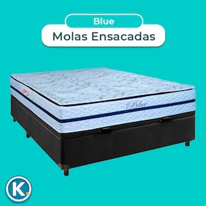 Cama Box Bau + Colchão Casal Molas Ensacadas Blue Paropas - Preto