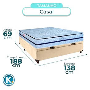 Conjunto Casal Colchão Blue + Cama Box BauColchão Casal com 32cm de altura, oferecendo conforto elevado e presença imponenteRevestido em poliéster resistente, com toque agradável e ótima durabilidadeSuporte para até 150kg, ideal para quem busca firmeza e resistênciaBase baú casal com 37cm de altura e amplo espaço interno para organizaçãoRevestimento em Veludo , fácil de limpar e com visual modernoEstrutura reforçada com capacidade para até 150KgFicha Técnica Colchão:Modelo: BlueMarca: ParopasTamanho: CasalTecido: PoliésterLargura: 138cmComprimento: 188cmAltura: 32cmSuporte de Peso: 150KgGarantia: 3 MesesFicha Técnica Cama Box Bau:Modelo: PopMarca: NatureTamanho: CasalTecido: VeludoLargura: 138cmComprimento: 188cmAltura: 30cmAltura dos Pés: 7cmMaterial dos Pés: MadeiraSuporte de Peso: 150KgPeso: 35KgGarantia: 3 MesesAtenção:Antes da compra certifique-se de que o produto passa por elevadores, portas e corredores.As transportadoras não realizam entregas por escadas ou içamentos.Caso o item não caiba no elevador, a entrega será considerada concluída no térreo do prédio.A cor e tonalidade do produto pode variar de acordo com o dispositivo que o usuário está acessando.