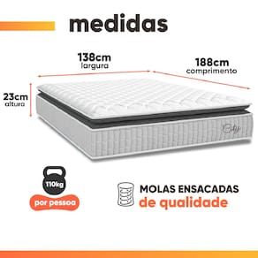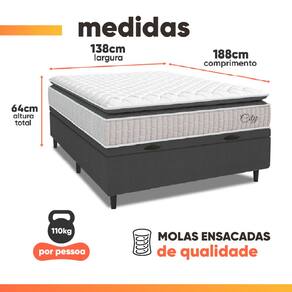MODELO: Cama Box Baú Casal Colchão Molas Ensacadas City Pillow Top 138x188x64cm