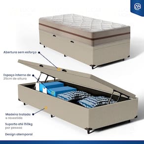Sejam bem-vindos(as) a Lucas Home! Pensando em melhorar suas noites de sono?A cama Box + Colchão Classic Molas é a escolha ideal! Fabricado com matéria-prima de qualidade, ele suporta até 120kg por pessoa, proporcionando conforto médio, o que lhe confere conforto extra durante o sono sem comprometer sua coluna. Base baú é confeccionada com madeira de reflorestamento com tratamentos anticupim e antimofo, o seu diferencial é seu compartimento interno garantindo um novo espaço em seu quarto, agregando um valor e sofisticação ao ambiente.