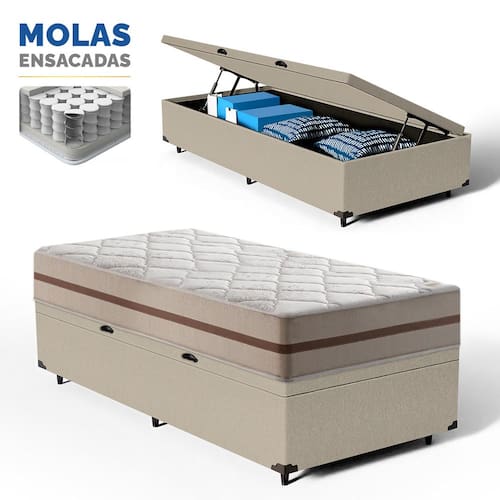 Sejam bem-vindos(as) a Lucas Home! Pensando em melhorar suas noites de sono?A cama Box + Colchão Classic Molas é a escolha ideal! Fabricado com matéria-prima de qualidade, ele suporta até 120kg por pessoa, proporcionando conforto médio, o que lhe confere conforto extra durante o sono sem comprometer sua coluna. Base baú é confeccionada com madeira de reflorestamento com tratamentos anticupim e antimofo, o seu diferencial é seu compartimento interno garantindo um novo espaço em seu quarto, agregando um valor e sofisticação ao ambiente.