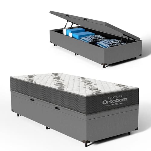 Além do colchão, a base baú incorporada aumenta a funcionalidade do seu quarto, oferecendo um espaço de armazenamento adicional. Construída com madeira tratada, tornando-a não apenas prática mas também durável e resistente. Este conjunto é a solução perfeita para quem busca maximizar o conforto e a utilidade em espaços compactos.