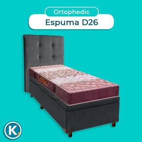 Cama Box Bau + Colchão Solteiro D26 Ortophedic Sankonfort + Cabeceira Estofada Conjunto Solteiro Colchão Ortophedic + Cama Box Bau Colchão solteiro padrão com 25cm de altura, proporcionando mais conforto e presença