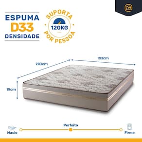 Descubra o equilíbrio perfeito entre conforto e suporte com nosso colchão de espuma D33, revestido com tecido Jacquard e poliéster. Ideal para quem precisa de uma base firme, suportando até 120 kg por pessoa. Modelo ortopédico, o que garante a posição correta para sua coluna durante o seu sono.