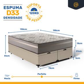 - Dimensões (larg. x comp. x alt.) Queen: 158x198x42cm Bipartido(2 Partes de 79).