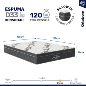 Buscando um colchão com conforto e suporte equilibrados? Nosso Colchão de Espuma D33, com pillow in para uma camada extra de conforto, é ideal para quem precisa de suporte firme. Suporta até 120 kg por pessoa, proporcionando uma base estável para um sono reparador.