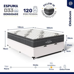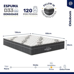 Buscando um colchão com conforto e suporte equilibrados? Nosso Colchão de Espuma D33, com pillow in para uma camada extra de conforto, é ideal para quem precisa de suporte firme. Suporta até 120 kg por pessoa, proporcionando uma base estável para um sono reparador.