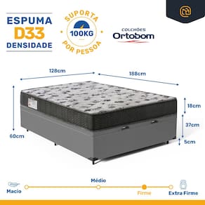 Além do colchão, a base baú incorporada aumenta a funcionalidade do seu quarto, oferecendo um espaço de armazenamento adicional. Construída com madeira tratada, tornando-a não apenas prática mas também durável e resistente. Este conjunto é a solução perfeita para quem busca maximizar o conforto e a utilidade em espaços compactos.