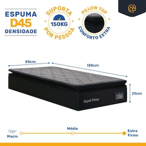 Procurando um colchão que ofereça suporte extra-firme e máxima durabilidade? Nosso modelo de Espuma D45 com Pillow Top foi desenvolvido para quem valoriza conforto e estabilidade. A densidade D45 proporciona firmeza superior, enquanto a camada extra de Pillow Top garante alívio nos pontos de pressão.